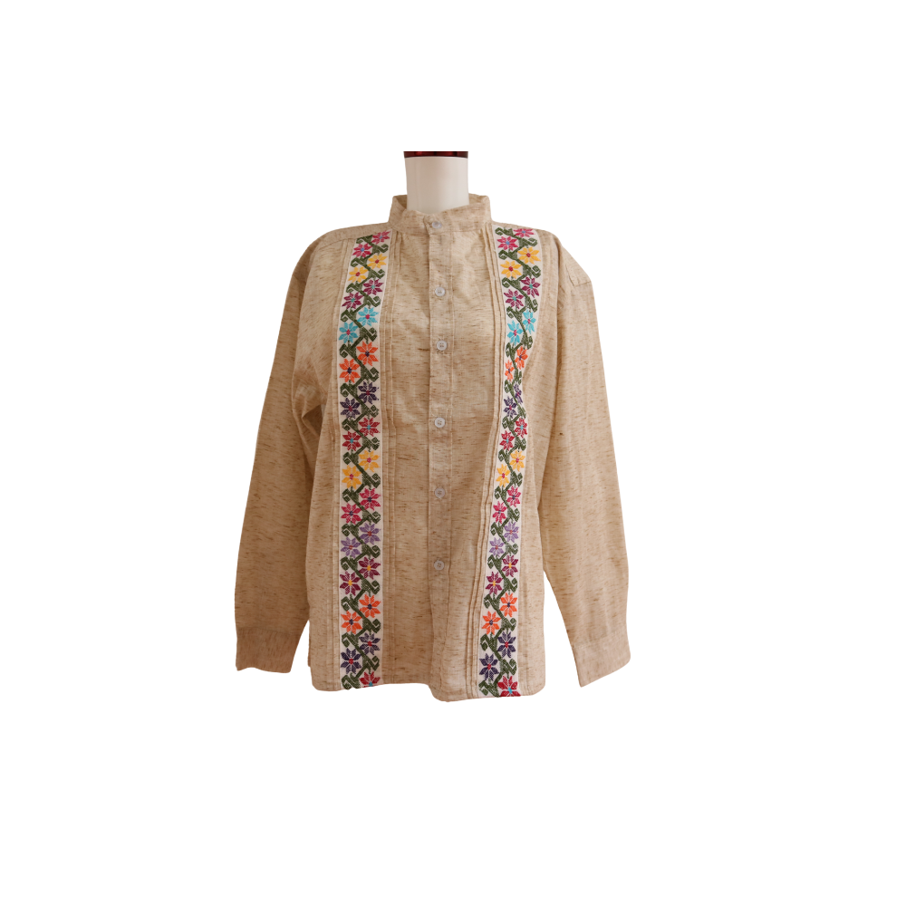 / Camisa beige de lino aplicación en telar de cintura