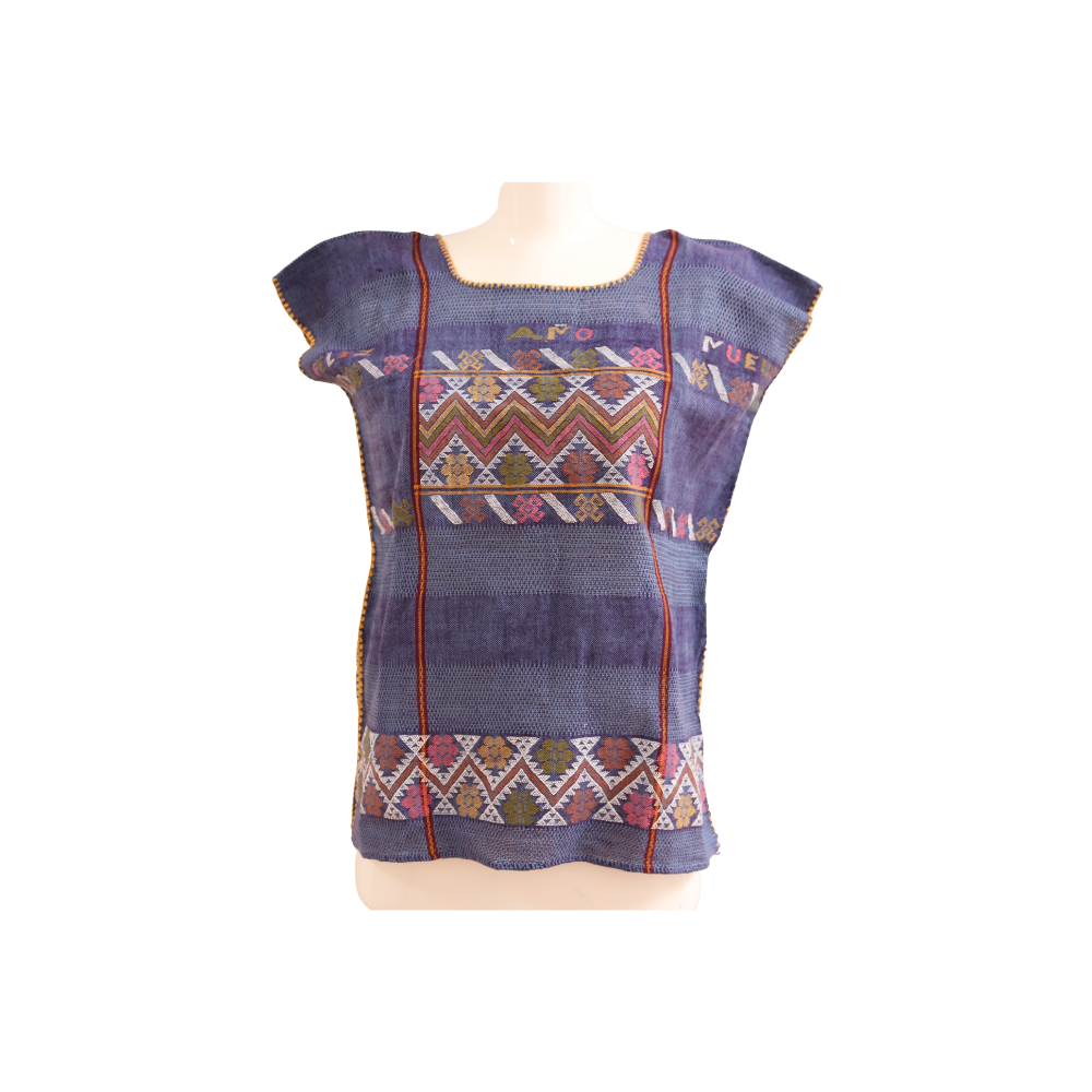 Blusa azul con blanco telar
